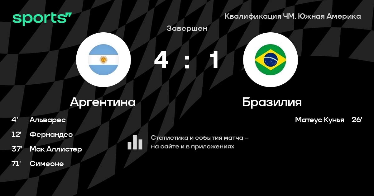 Аргентина – Бразилия: Аргентина не пропускает в 4 последних матчах против этого соперника
