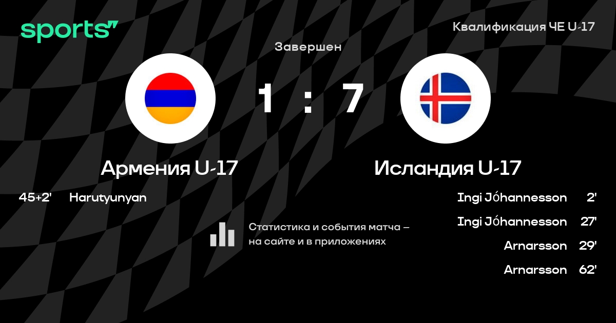 Jón Sölvi Símonarson - Jón Arnar Sigurðsson, Sölvi Stefánsson, Egill Orri Arnarsson - Йоханнессен, Róbert Elís Hlynsson, Хадльссон, Mikael Breki Þórðarson - Thomas Ari Arnarsson, Daníel Ingi Jóhannesson, Karl Ágúst KarlssonЗапасные: Магнуссон, Sverrisson, Arnarsson, Olsen, Guðbergsson, Дадасон, Guðnason, Bergmann, Guðni Arnarsson