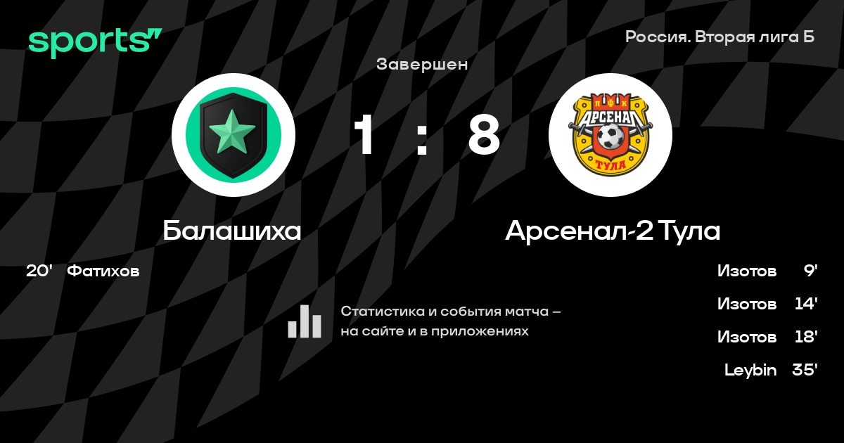 Результат прошлой игры в турнире «Вторая лига»: Строгино – Балашиха 4:1. После 22 туров Балашиха набирает 13 очков и занимает 12 место в турнире. Балашиха проигрывает в 4 последних матчах в рамках турнира «Вторая лига». В 3 последних матчах в турнире «Вторая лига» Балашиха обязательно забивает. Балашиха пропускает в 4 последних матчах в турнире «Вторая лига». В последних 5 играх Балашиха забивает 3 голов. В последних 5 играх Балашиха пропускает 14 голов.