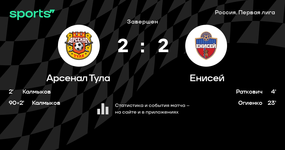 Арсенал Тула – Енисей: Арсенал Тула не проигрывает в 7 последних матчах против этого соперника дома