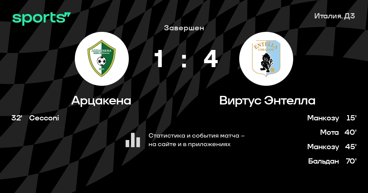 Арцакена – Виртус Энтелла: коэффициенты