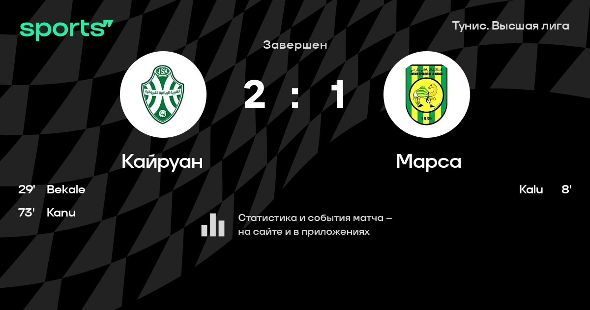 Результат прошлой игры в турнире «Лига 1»: Олимпик Бежа – Кайруан 0:0. После 4 туров Кайруан набирает 4 очков и занимает 13 место в турнире. Лучший бомбардир команды – M. Fatnassi: он забил 1 в 2 матчах. Кайруан не может выиграть в 3 последних матчах в рамках турнира «Лига 1». В 3 последних матчах в турнире «Лига 1» Кайруан обязательно забивает. В последних 5 играх Кайруан забивает 2 голов. В последних 5 играх Кайруан пропускает 8 голов.