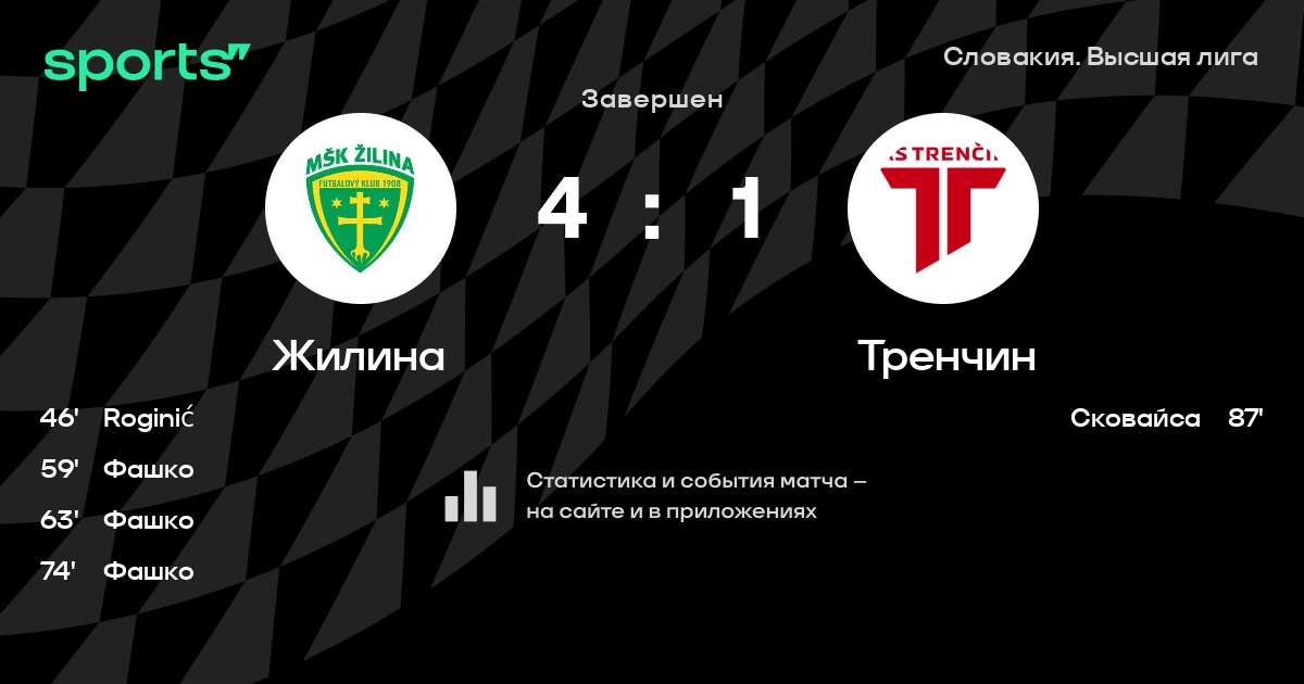 Жилина – Тренчин: Жилина не проигрывает в 6 из 8 последних матчей против этого соперника