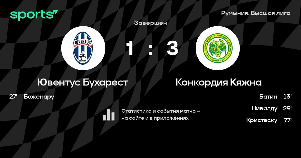 Трансляция Ювентус Бухарест - Конкордия Кяжна