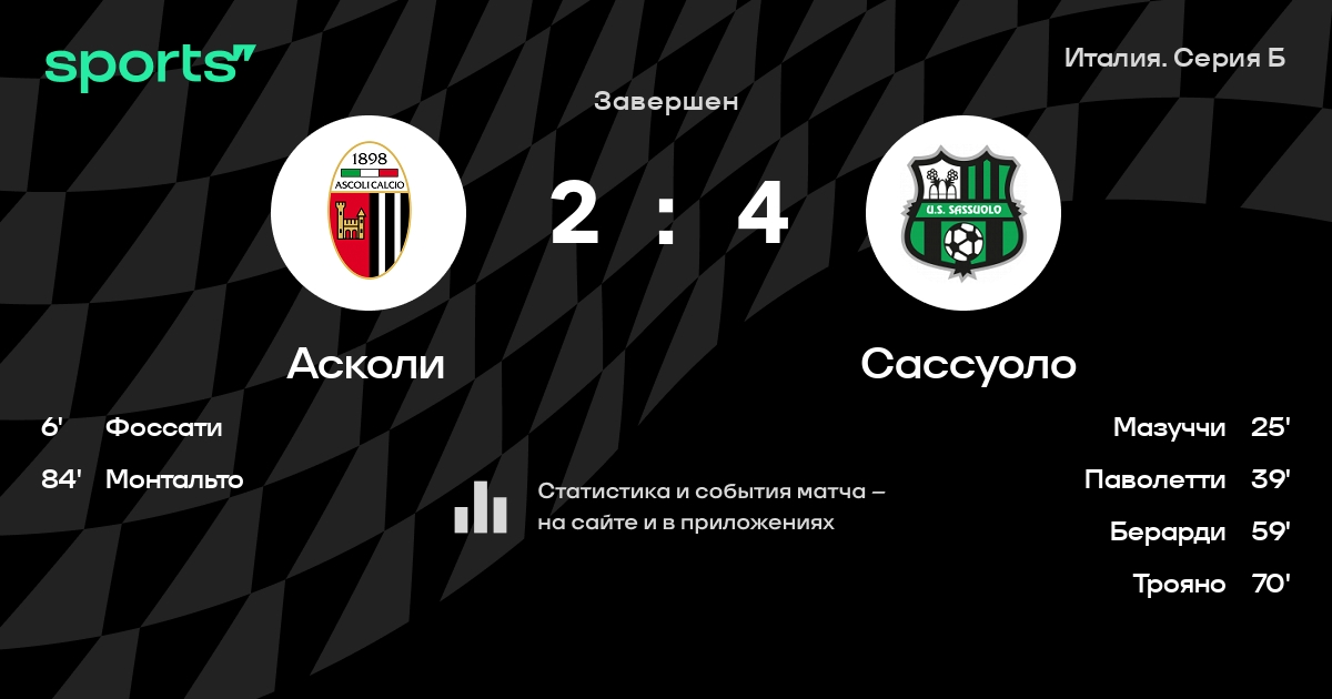 Трансляция Асколи - Сассуоло