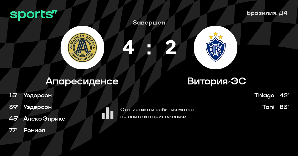 Тони - da Silva Danin, Рафаэл Круз, Палм, Икаро - Oliveira Alves, Cardoso da Silva, Роберт Жеаннине - Кардозо, Уэдерсон, Алекс ЭнрикеЗапасные: Carvalho Farias, Paulino Silva, Sousa, Tavares, Вашингтон, Candido da Trindade, Маркос Пауло, Рониэл