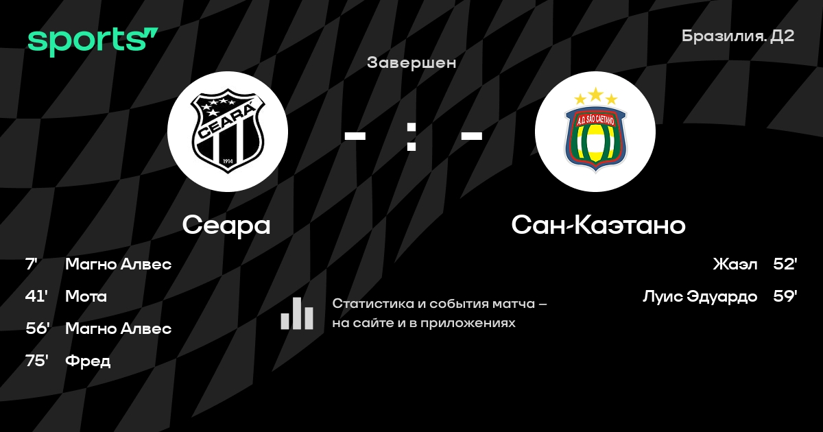 Фернандо Энрике - Эйсебио, Рикардо Силва, Диего Иво, Маркос - Рожериньо, Жоао Маркос, Лулинья, Рикардиньо - Мота, Магно АлвесЗапасные: Жаилсон, Аугусто, Элдер, Густавао, Диого Орландо, Эвертон, Динелсон, Гамальо, Ромарио, Ришели