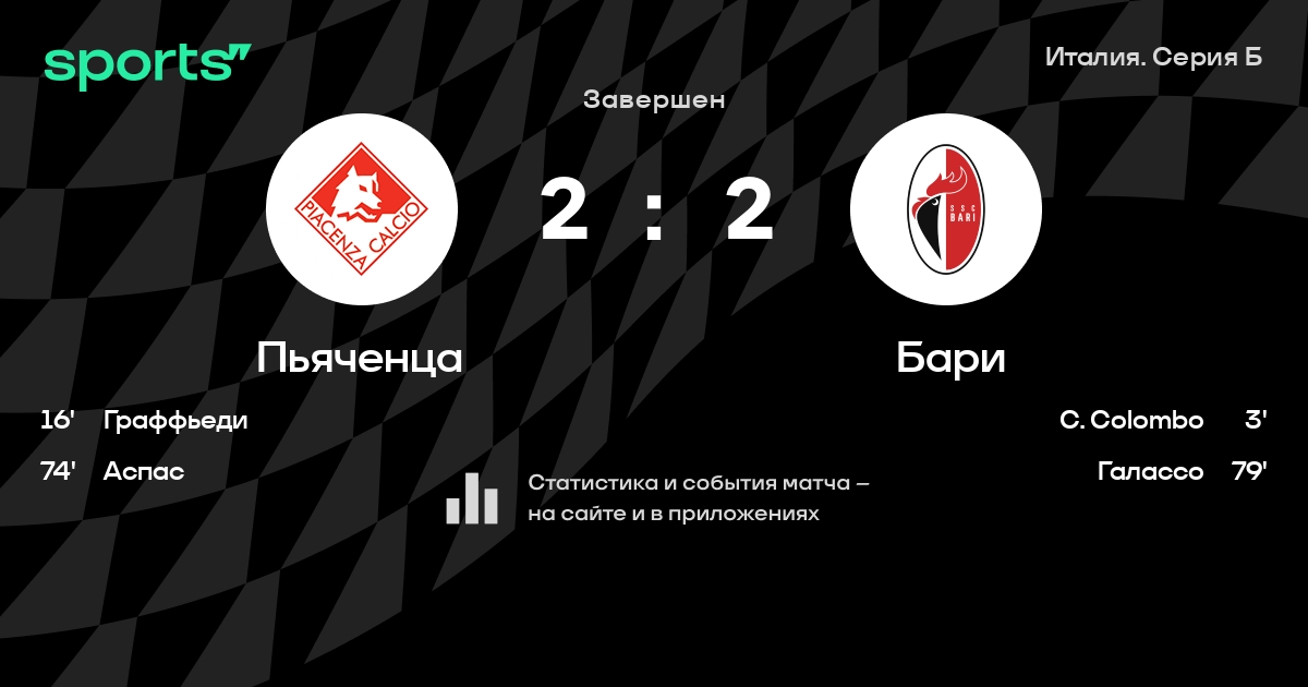 Santoni - Паризи, Раноккия, Галассо, Stellini - De Vezze, Бьянко, Edusei - Colombo, Ландзафаме, Баррето