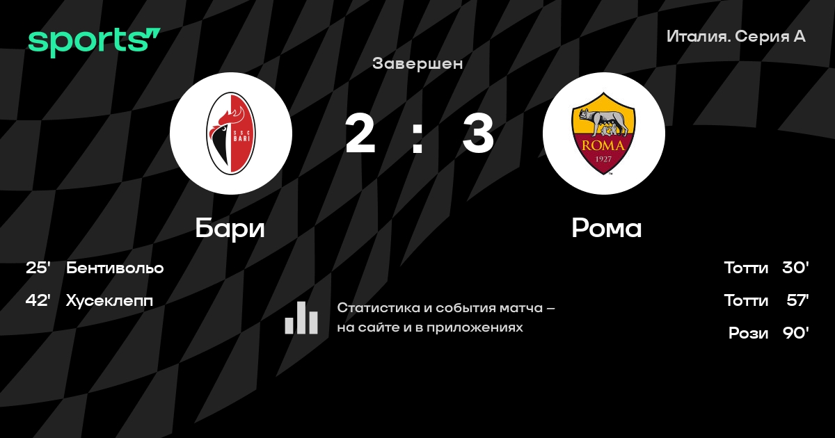 Дони - Кассетти, Бурдиссо, Риисе, Жуан - де Росси, Писарро, Перротта - Тотти, Вучинич, МенезЗапасные: , Рози, Кастеллини, Бриги, Таддеи, Симплисио, Боррьелло
