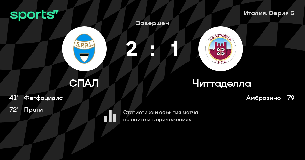 | 1 | Фрозиноне | 38 | 24 | 8 | 6 | 63 | 26 | +37 | 80 | ||
