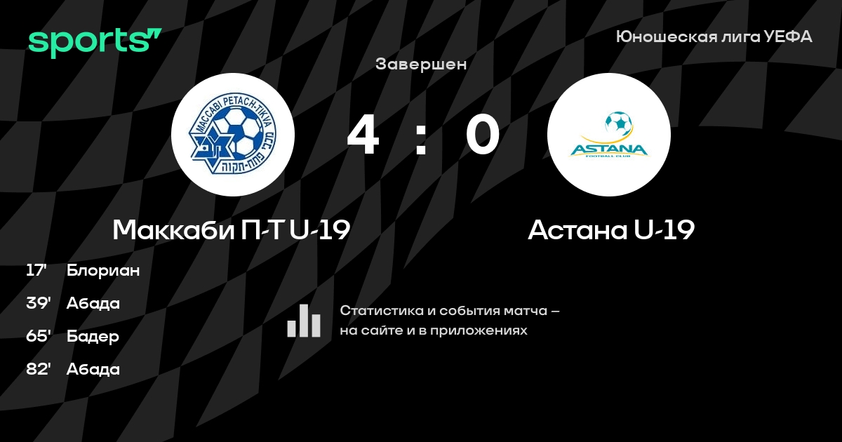Трансляция Маккаби П-Т U-19 - Астана U-19