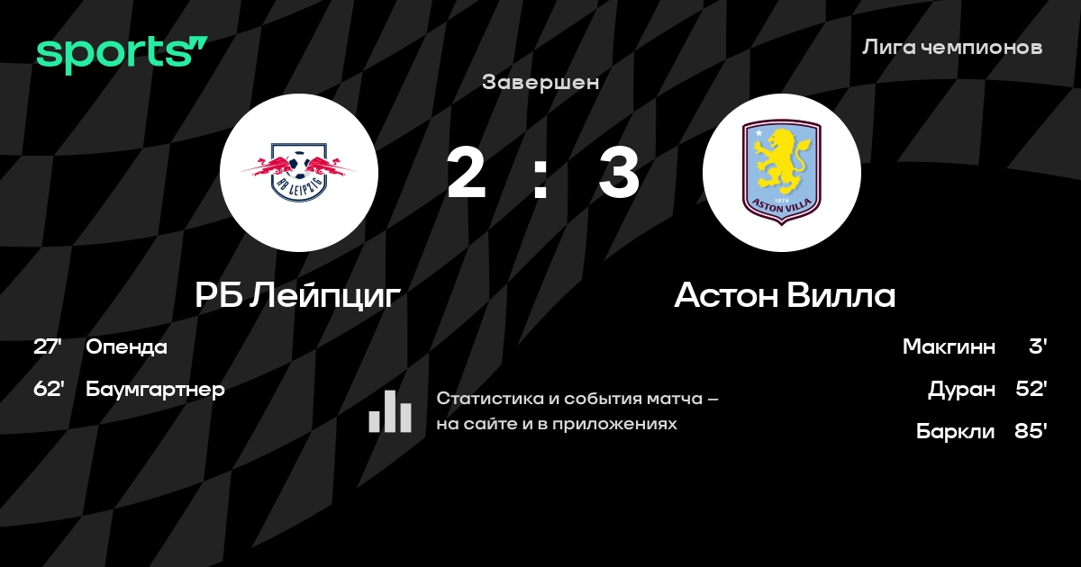 Трансляция РБ Лейпциг - Астон Вилла