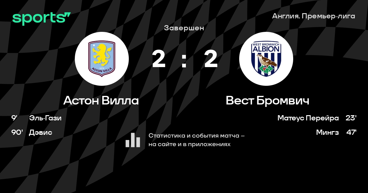 Астон Вилла – Вест Бромвич: Астон Вилла побеждает в 3 последних очных матчах