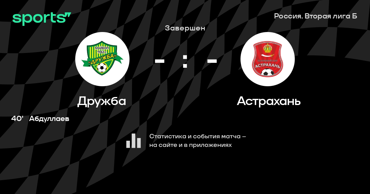 Результат прошлой игры в турнире «Вторая лига»: Дружба – Динамо-2 Махачкала 5:0. После 29 туров Дружба набирает 41 очков и занимает 3 место в турнире. Лучший бомбардир команды – Гаджимурад Абдуллаев: он забил 11 в 28 матчах. В последних 5 играх Дружба забивает 7 голов. В последних 5 играх Дружба пропускает 5 голов.