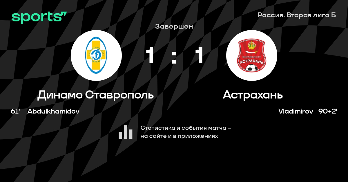Результат прошлой игры в турнире «Вторая лига»: Ангушт – Динамо Ставрополь 1:0. После 15 туров Динамо Ставрополь набирает 30 очков и занимает 1 место в турнире. Лучший бомбардир команды – Махач Абдулхамидов: он забил 8 в 16 матчах. В последних 5 играх Динамо Ставрополь забивает 7 голов. В последних 5 играх Динамо Ставрополь пропускает 2 голов.