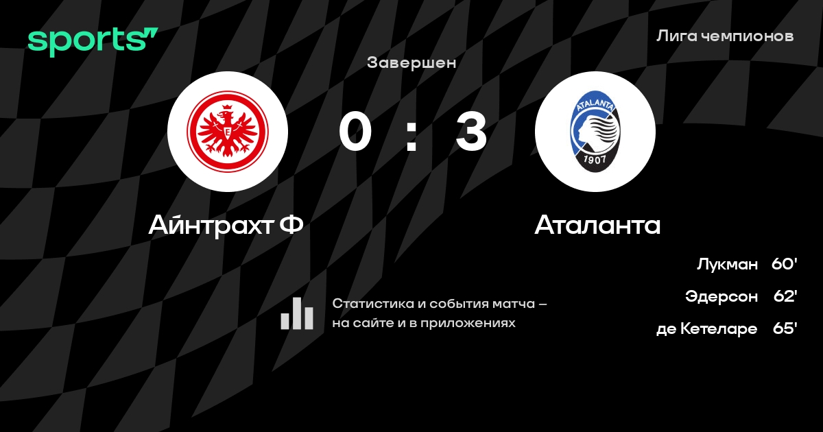 ЛЧ: шансы Айнтрахта Ф и Аталанты на победу в матче 5-го тура Лиги Чемпионов