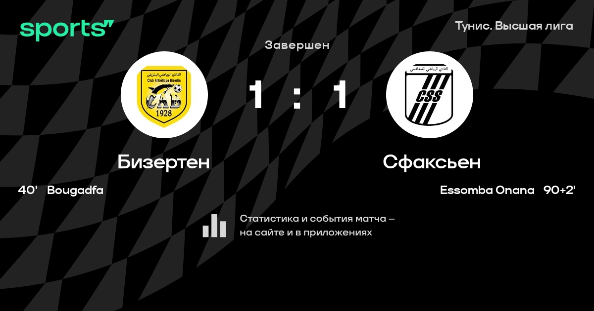 Бизертен – Сфаксьен: Сфаксьен не пропускает в 1 из 7 последних матчей против этого соперника