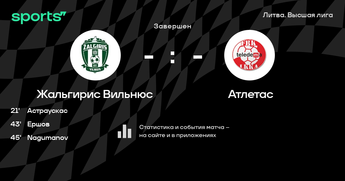 Жальгирис Вильнюс - Атлетас: статистика матча