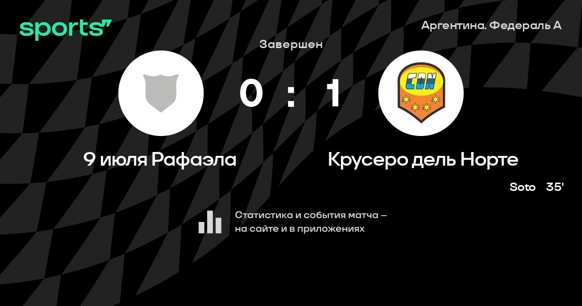 9 июля Рафаэла – Крусеро дель Норте: 9 июля Рафаэла забивает в 5 последних матчах против этого соперника