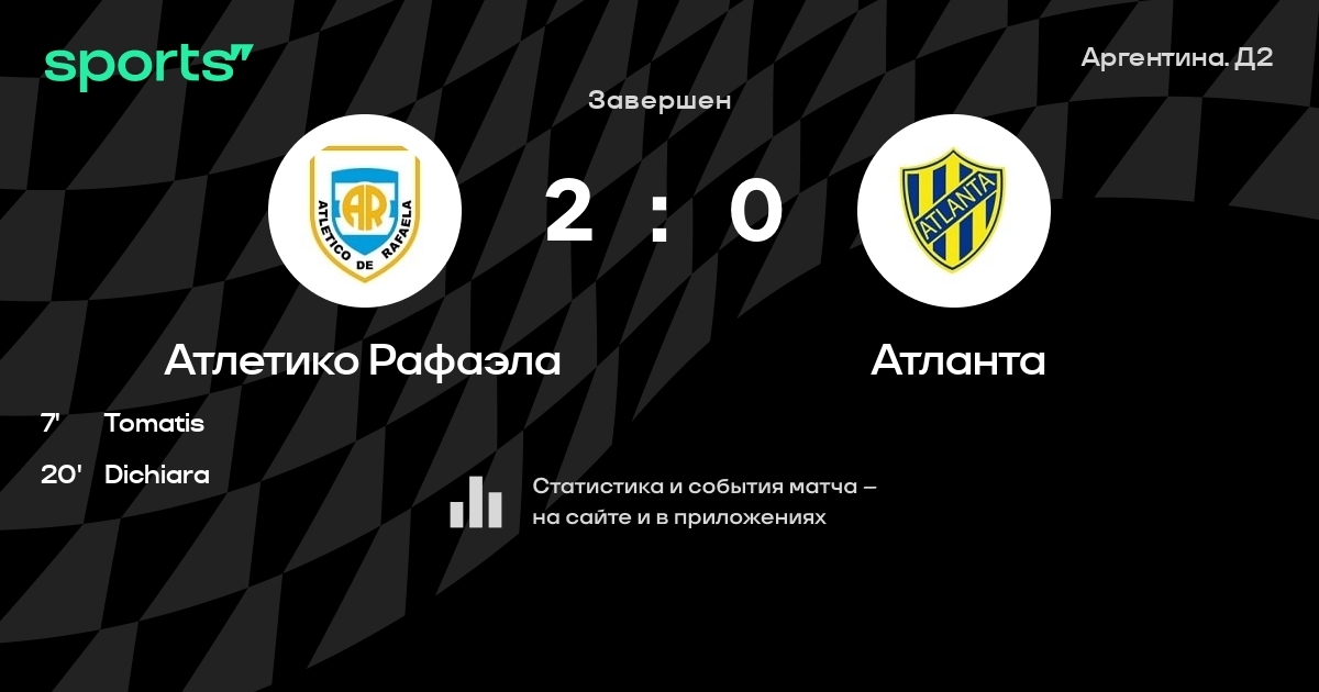 Результат прошлой игры в турнире «Примера B Насьональ»: Дефенсорес Унидос – Атлетико Рафаэла 0:0. После 34 туров Атлетико Рафаэла набирает 22 очков и занимает 19 место в турнире. Лучший бомбардир команды – Лукас Альбертенго: он забил 4 в 28 матчах. Атлетико Рафаэла играет вничью в 3 последних матчах в рамках турнира «Примера B Насьональ». В 3 последних матчах в турнире «Примера B Насьональ» Атлетико Рафаэла обязательно забивает. Атлетико Рафаэла не пропускает в 3 последних матчах в турнире «Примера B Насьональ». В последних 5 играх Атлетико Рафаэла забивает 2 голов. В последних 5 играх Атлетико Рафаэла пропускает 4 голов.