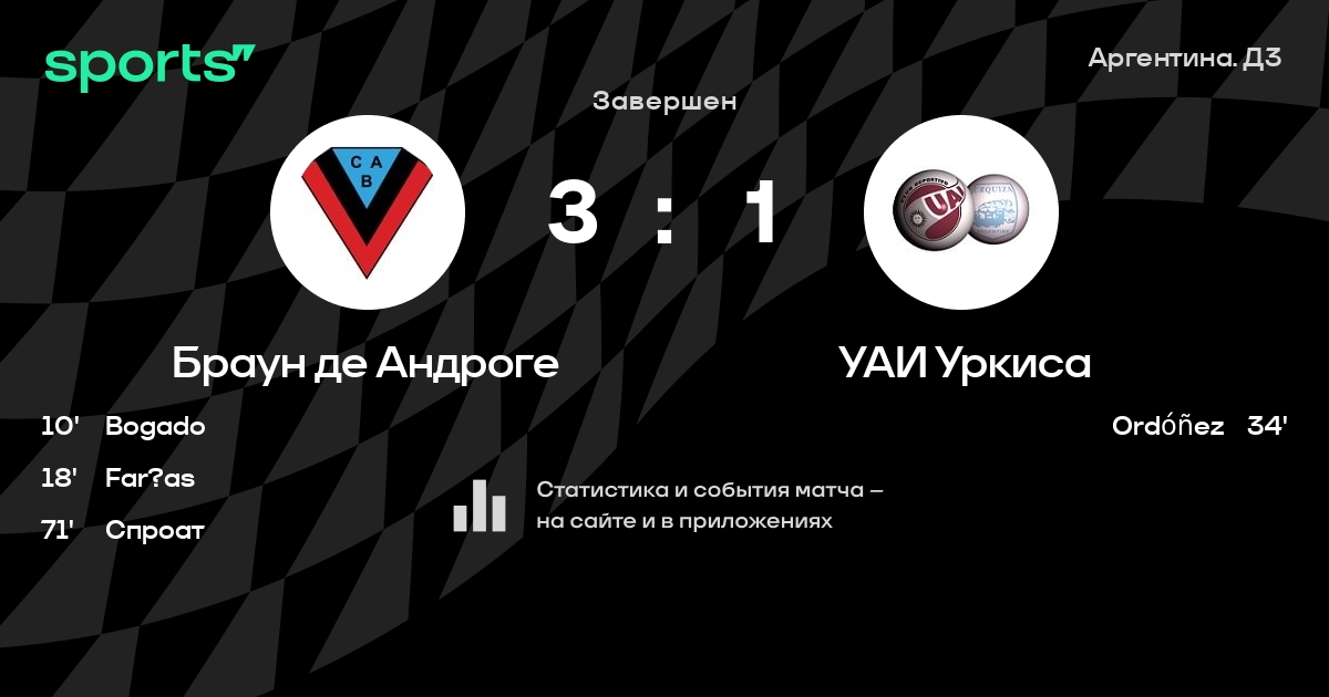 Браун де Андроге – УАИ Уркиса: УАИ Уркиса забивает в 3 последних матчах против этого соперника