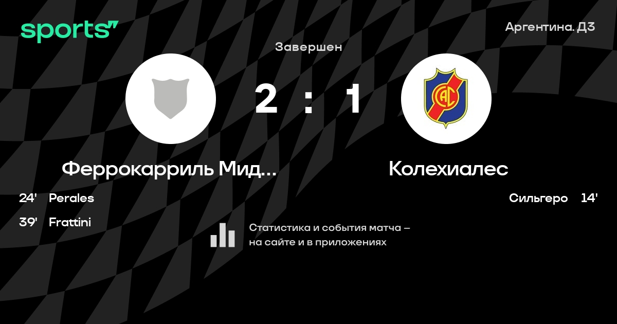 Результат прошлой игры в турнире «Примера B»: Док Суд – Феррокарриль Мидланд 2:3. После 13 туров Феррокарриль Мидланд набирает 23 очков и занимает 4 место в турнире. Лучший бомбардир команды – J. Perales: он забил 8 в 25 матчах. В последних 5 играх Феррокарриль Мидланд забивает 9 голов. В последних 5 играх Феррокарриль Мидланд пропускает 3 голов.