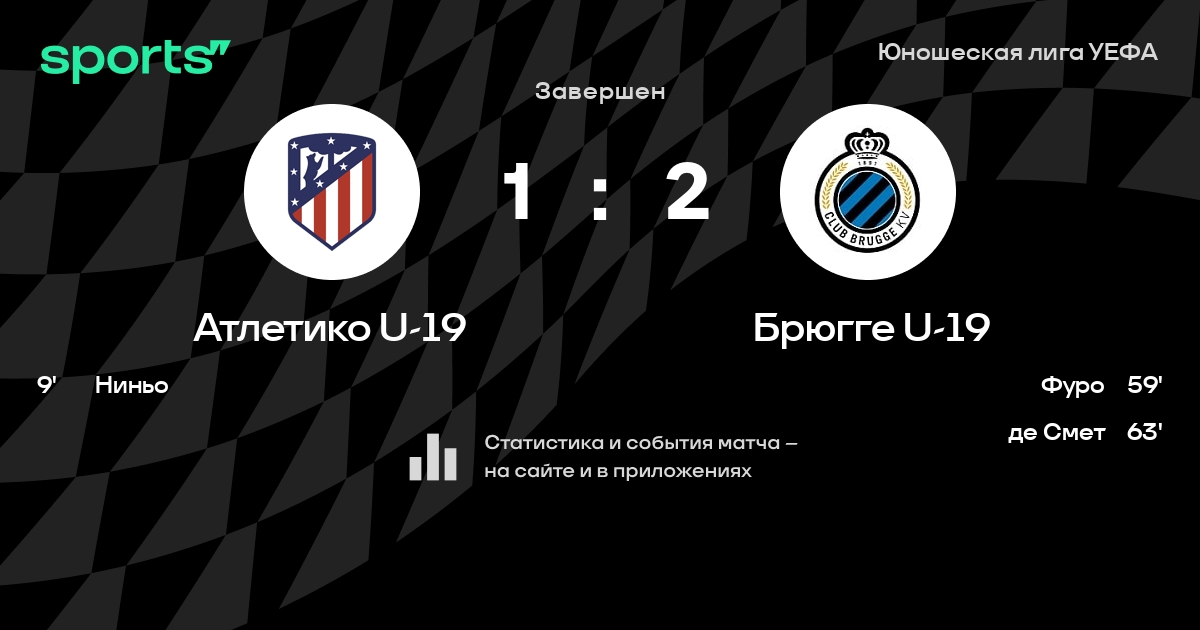 Атлетико U-19 – Брюгге U-19: Брюгге U-19 забивает в 3 последних матчах против этого соперника