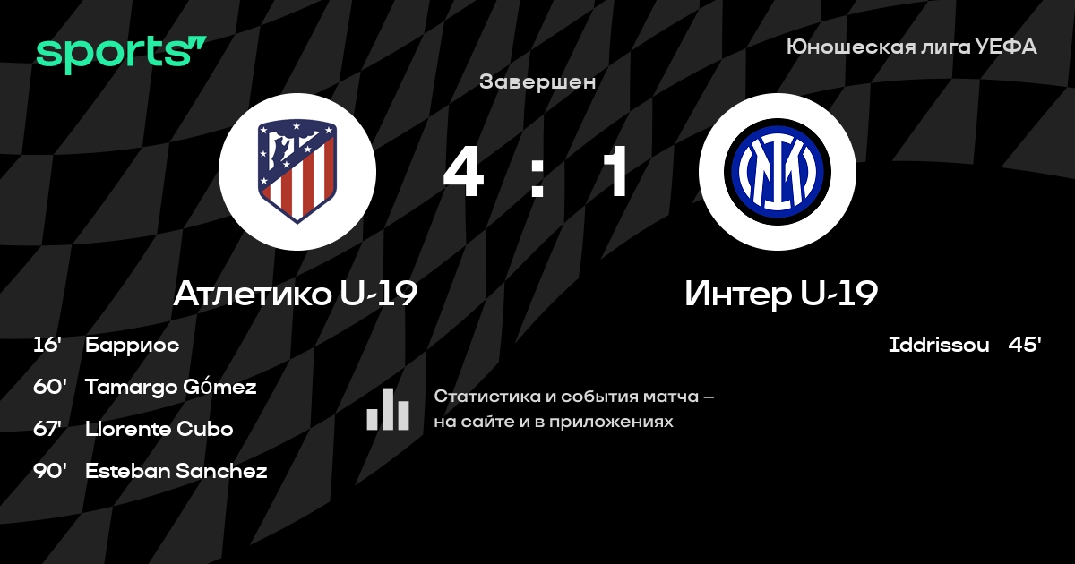 Трансляция Атлетико U-19 - Интер U-19