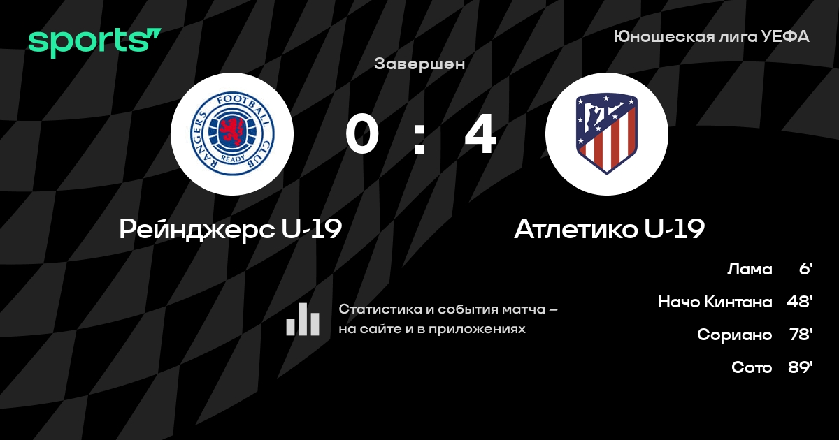 Трансляция Рейнджерс U-19 - Атлетико U-19