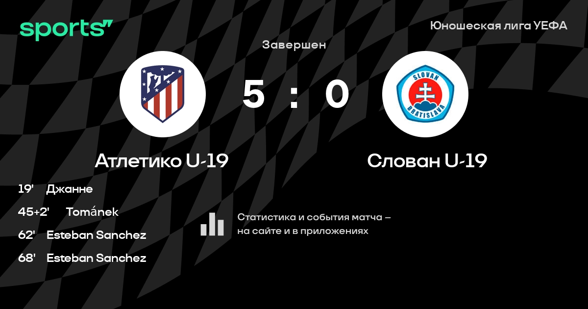 Результат прошлой игры в турнире «Юношеская лига УЕФА»: Спарта U-19 – Атлетико U-19 1:2. После 5 туров Атлетико U-19 набирает 8 очков и занимает 16 место в турнире. Лучший бомбардир команды – Omar Janneh: он забил 4 в 5 матчах. В 5 последних матчах в турнире «Юношеская лига УЕФА» Атлетико U-19 обязательно забивает. Атлетико U-19 пропускает в 4 последних матчах в турнире «Юношеская лига УЕФА». В последних 5 играх Атлетико U-19 забивает 11 голов. В последних 5 играх Атлетико U-19 пропускает 8 голов.