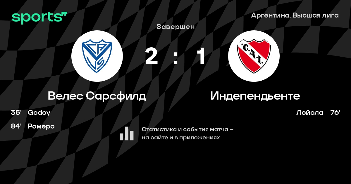 Велес Сарсфилд – Индепендьенте: коэффициенты