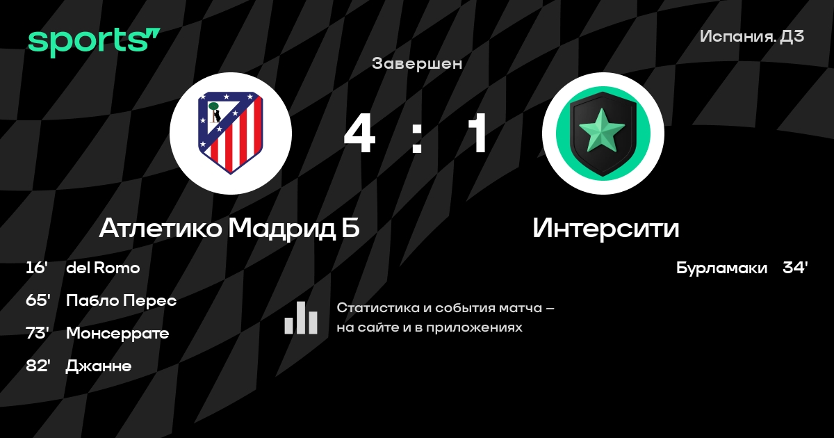 Атлетико Мадрид Б - Интерсити: составы на матч