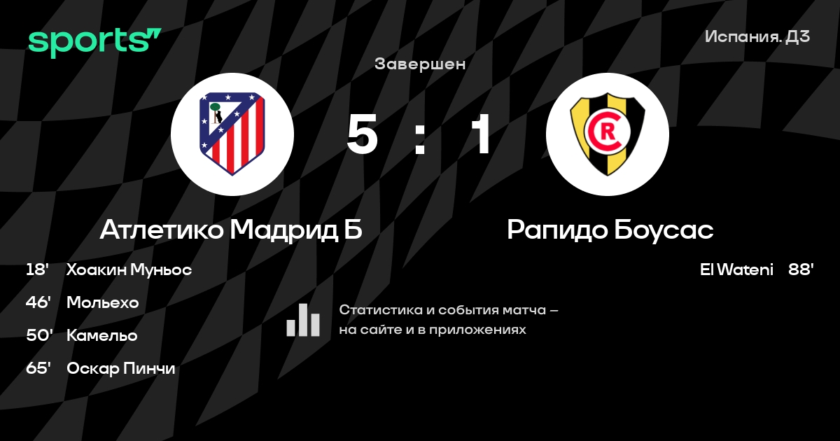 Трансляция Атлетико Мадрид Б - Рапидо Боусас