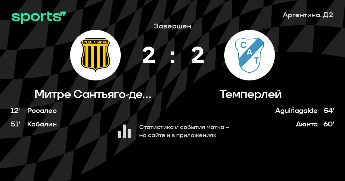 Результат прошлой игры в турнире «Примера B Насьональ»: Дефенсорес Унидос – Митре Сантьяго-дель-Эстеро 0:2. После 18 туров Митре Сантьяго-дель-Эстеро набирает 24 очков и занимает 12 место в турнире. Лучший бомбардир команды – M. Machado: он забил 3 в 15 матчах. В последних 5 играх Митре Сантьяго-дель-Эстеро забивает 5 голов. В последних 5 играх Митре Сантьяго-дель-Эстеро пропускает 3 голов.