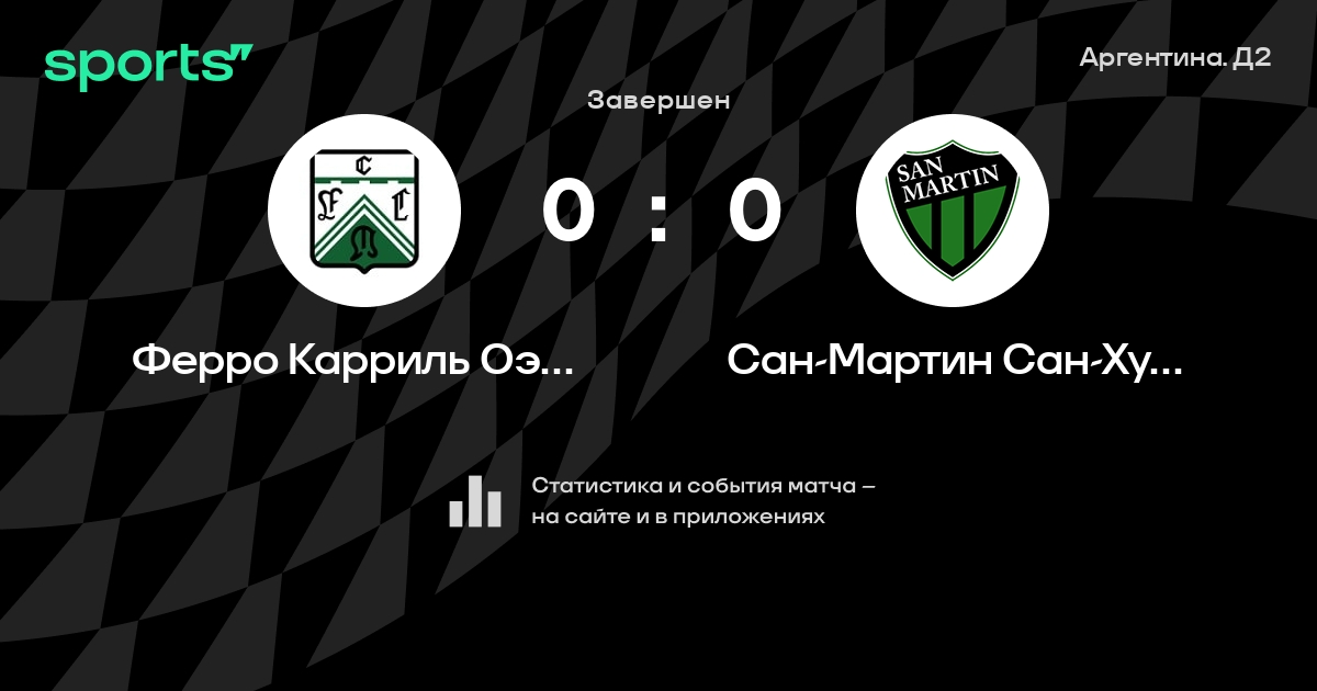 Ферро Карриль Оэсте – Сан-Мартин Сан-Хуан: Сан-Мартин Сан-Хуан не проигрывает в 7 из 9 последних матчей против этого соперника