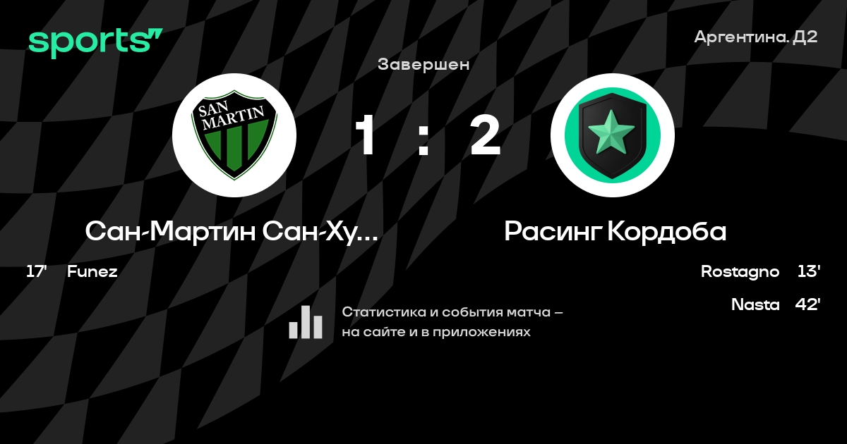 Результат прошлой игры в турнире «Примера B Насьональ»: Расинг Кордоба – Арсенал Саранди 3:1. После 37 туров Расинг Кордоба набирает 50 очков и занимает 8 место в турнире. Лучший бомбардир команды – B. Nasta: он забил 16 в 34 матчах. Расинг Кордоба не проигрывает в 3 последних матчах в рамках турнира «Примера B Насьональ». В 3 последних матчах в турнире «Примера B Насьональ» Расинг Кордоба обязательно забивает. Расинг Кордоба пропускает в 6 последних матчах в турнире «Примера B Насьональ». В последних 5 играх Расинг Кордоба забивает 7 голов. В последних 5 играх Расинг Кордоба пропускает 6 голов.