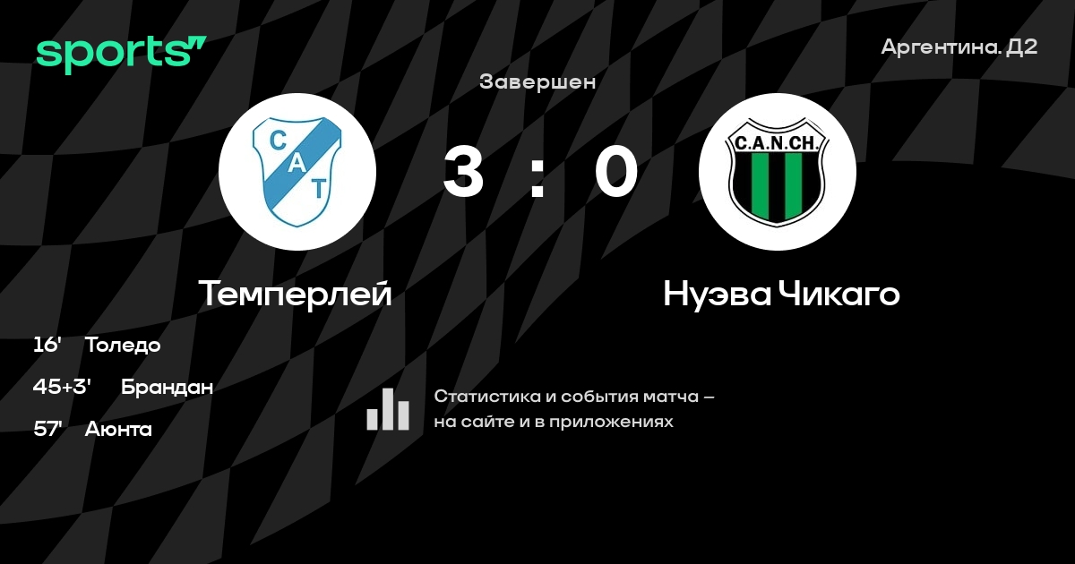 Результат прошлой игры в турнире «Примера B Насьональ»: Дефенсорес Унидос – Темперлей 0:0. После 33 туров Темперлей набирает 52 очков и занимает 7 место в турнире. Лучший бомбардир команды – Фернандо Брандан: он забил 5 в 30 матчах. В последних 5 играх Темперлей забивает 3 голов. В последних 5 играх Темперлей пропускает 4 голов.