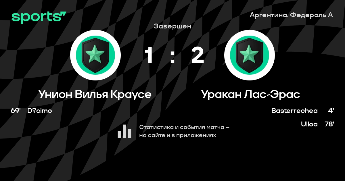 Унион Вилья Краусе - Уракан Лас-Эрас: статистика матча