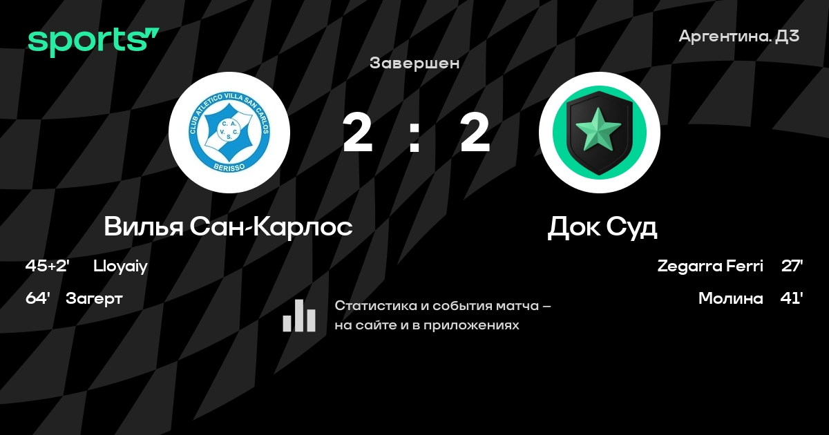 Вилья Сан-Карлос - Док Суд: статистика матча