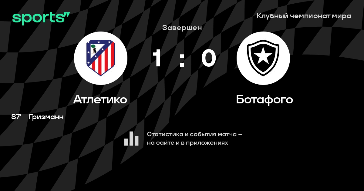 Клубный чемпионат мира: шансы «Атлетико Мадрид» и «Ботафого» на победу в матче группы В
