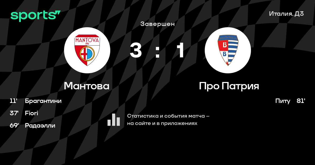 Мантова – Про Патрия: Мантова не проигрывает в 8 из 9 последних матчей против этого соперника дома