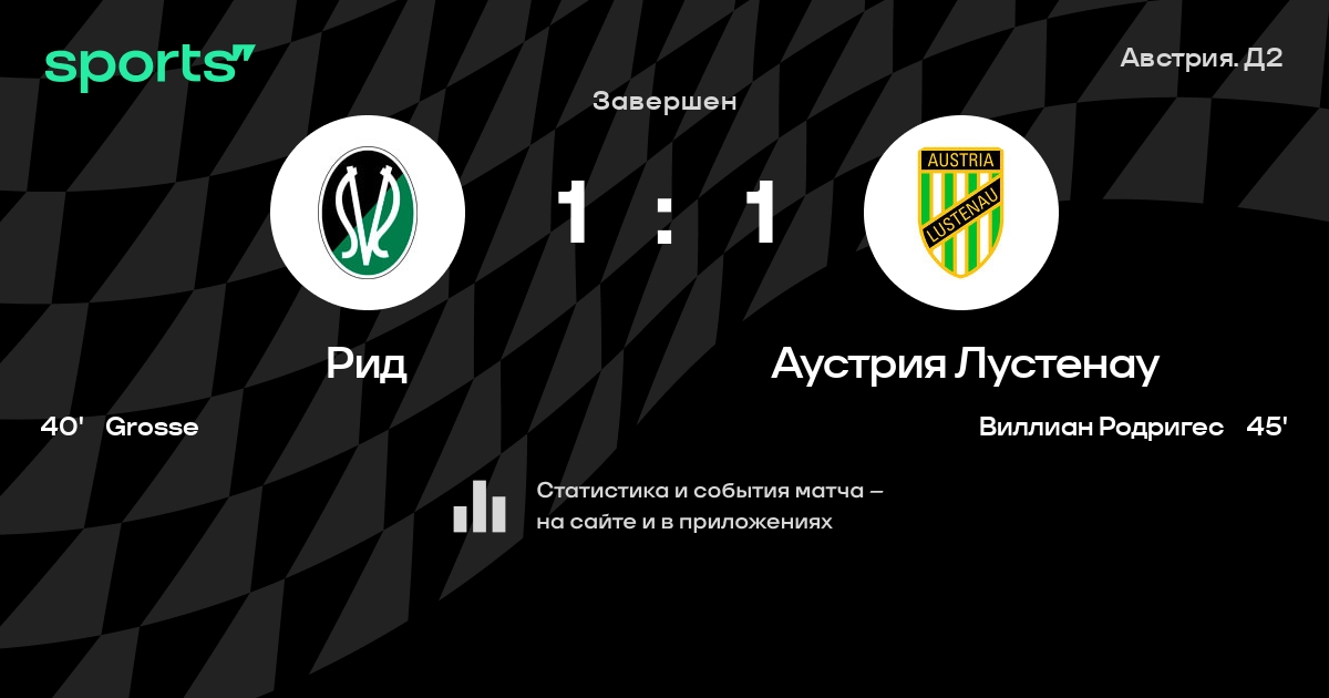 Рид – Аустрия Лустенау: Рид забивает в 3 последних матчах против этого соперника