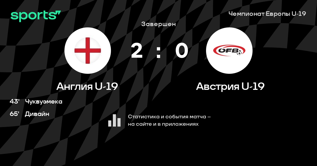 В последних 5 играх Англия U-19 забивает в среднем 3.20 гола за игру