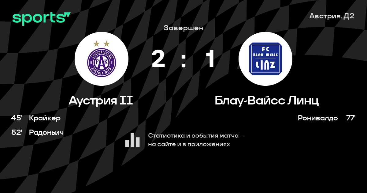 | 1 | Блау-Вайсс Линц | 30 | 19 | 4 | 7 | 63 | 27 | +36 | 61 | ||