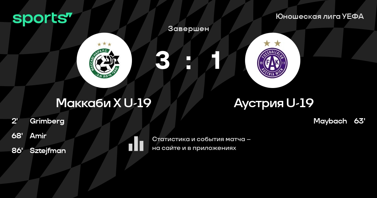 Трансляция Маккаби Хайфа U-19 - Аустрия U-19