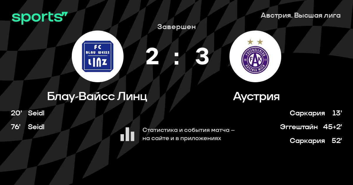 Блау-Вайсс Линц – Аустрия: Аустрия не проигрывает в 7 из 8 последних матчей против этого соперника в гостях