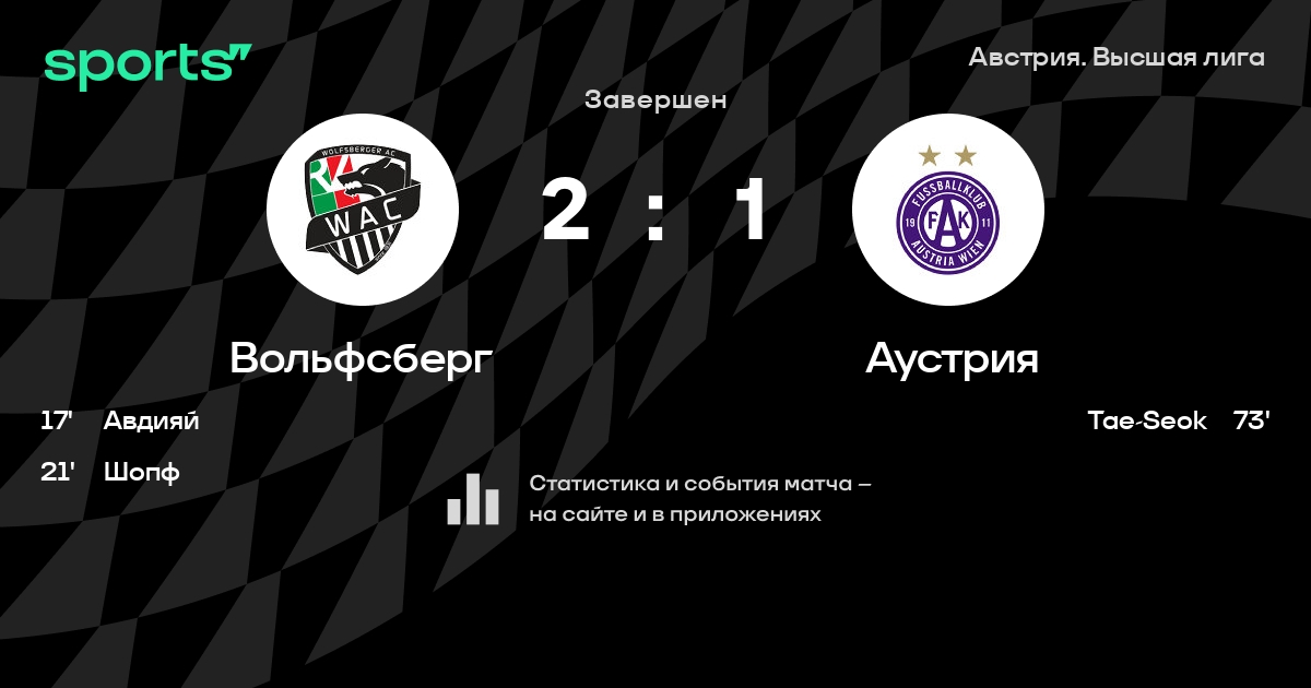 Вольфсберг – Аустрия: Аустрия не проигрывает в 5 из 7 последних матчей против этого соперника