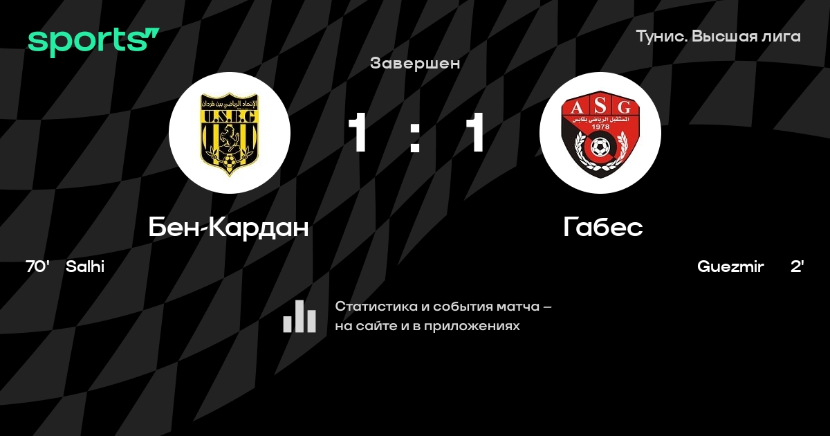 Бен-Кардан – Габес: Бен-Кардан не проигрывает в 5 из 7 последних матчей против этого соперника