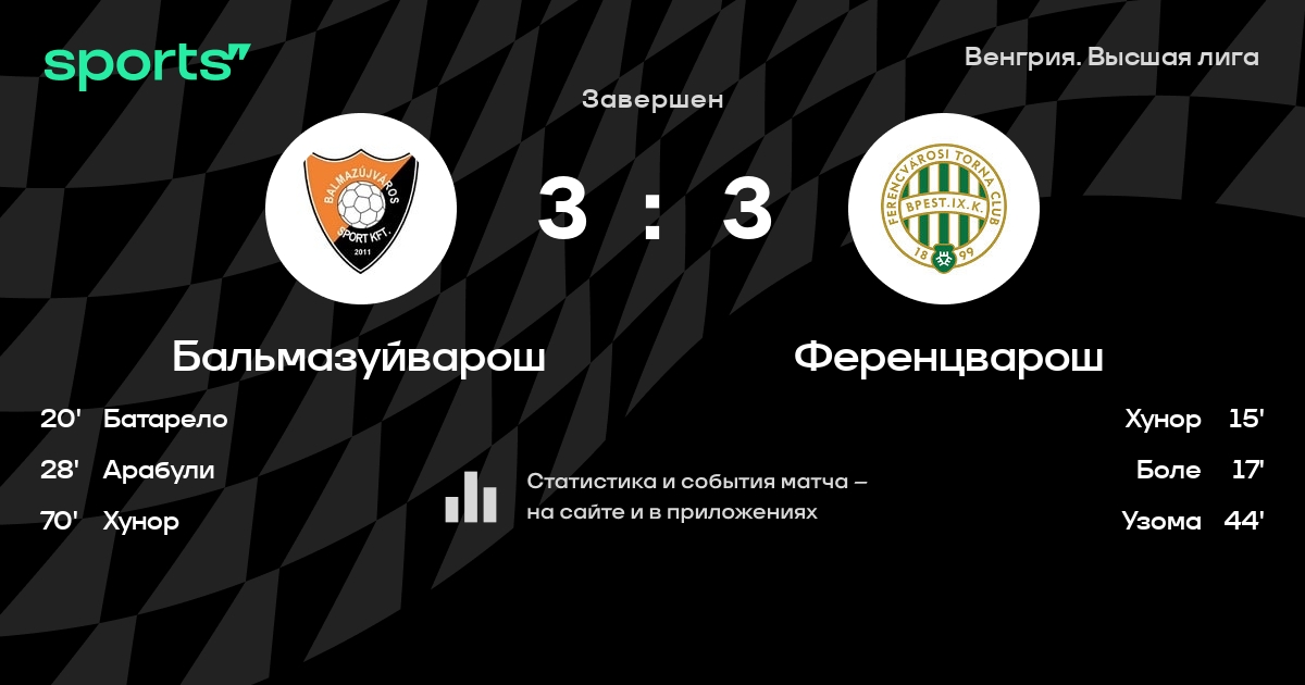 | 1 | Фехервар | 33 | 20 | 8 | 5 | 65 | 28 | +37 | 68 | ||