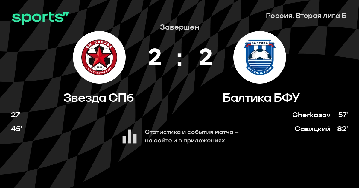 Результат прошлой игры в турнире «Вторая лига»: Балтика БФУ – Родина-М 4:2. После 21 туров Балтика БФУ набирает 42 очков и занимает 2 место в турнире. Лучший бомбардир команды – V. Vshivkov: он забил 4 в 13 матчах. Балтика БФУ не проигрывает в 6 последних матчах в рамках турнира «Вторая лига». В последних 5 играх Балтика БФУ забивает 8 голов. В последних 5 играх Балтика БФУ пропускает 4 голов.